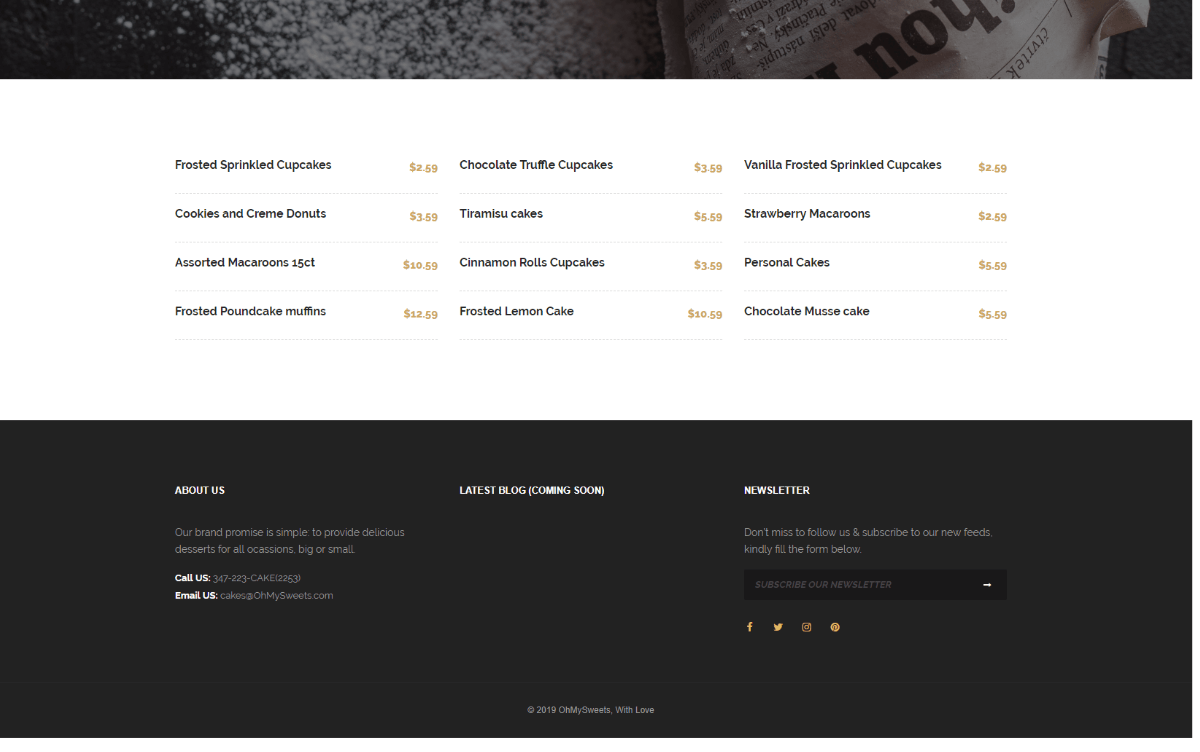 OhMySweets is not just about making delicious goods; it's more than that. We have satisfied many of our customers with our rich freshly made pastries. We thank each of our clients and their opinions; thanks to them we have grown and built what we are today!