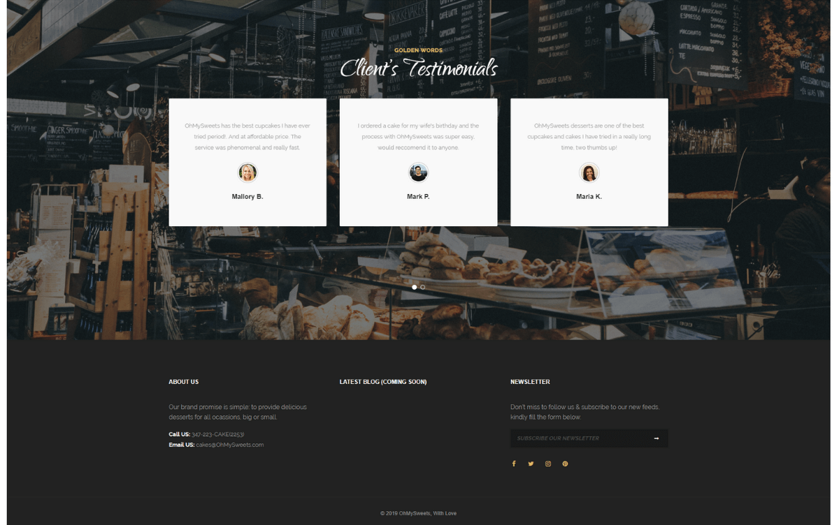 OhMySweets is not just about making delicious goods; it's more than that. We have satisfied many of our customers with our rich freshly made pastries. We thank each of our clients and their opinions; thanks to them we have grown and built what we are today!